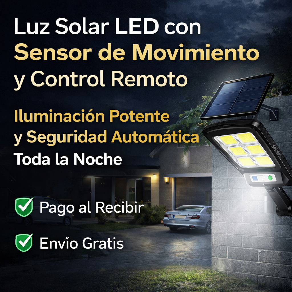 LUZ SOLAR LED CON SENSOR DE MOVIMIENTO Y CONTROL REMOTO